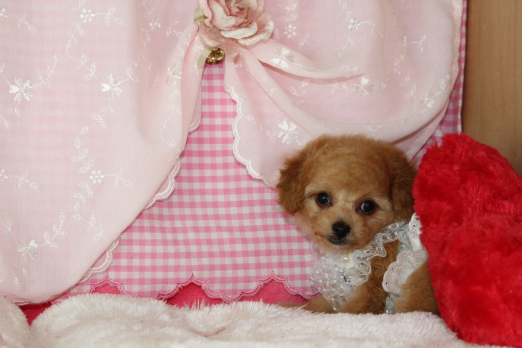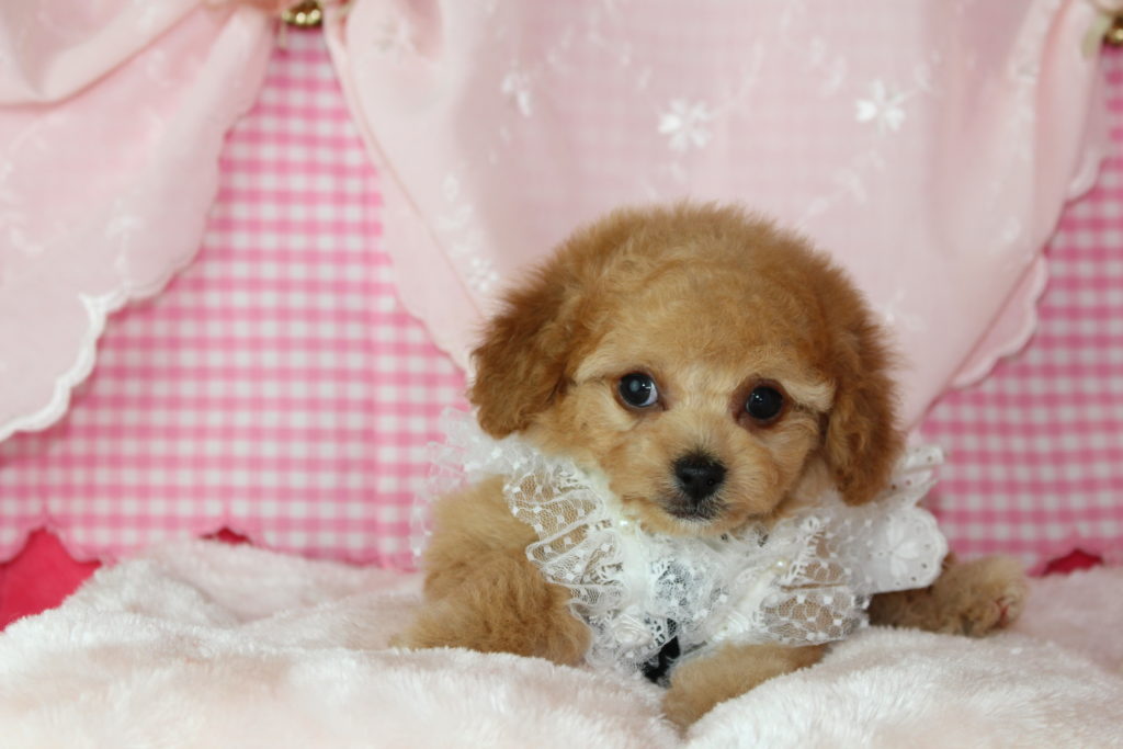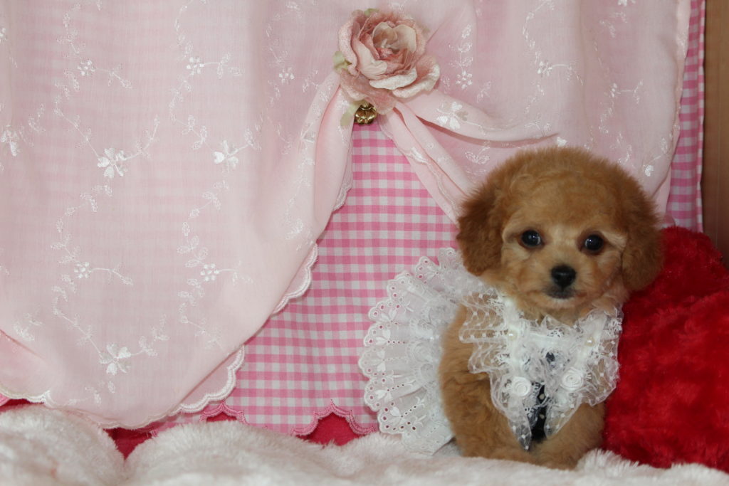 一言でティーカッププードル、タイニープードルと申しましてもあまりに小さ過ぎますと長生きできず2歳ぐらいで死んでしまったり、仮に長生きしたとしても病気勝ちだったり皮毛が薄くなり貧相になってしまったりとトラブルが多くなることが一般的です。ですがご紹介させて頂きます仔犬は骨量もしっかりとあり内蔵系の心配もなくご飯をしっかりと食べておりますのでそんな心配はございません。